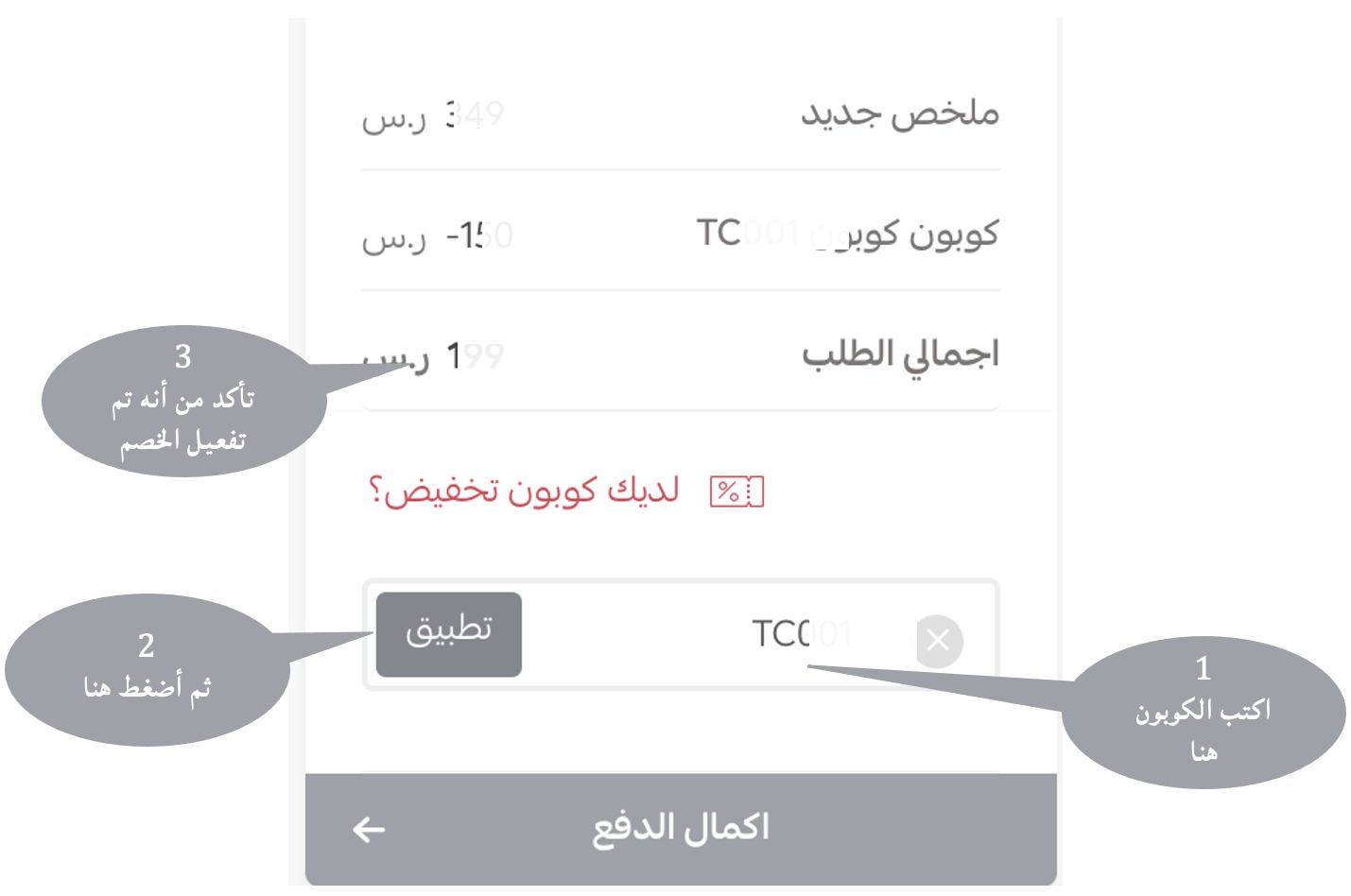 - يتم إضافة الكوبون المرسل في خانة الكوبون