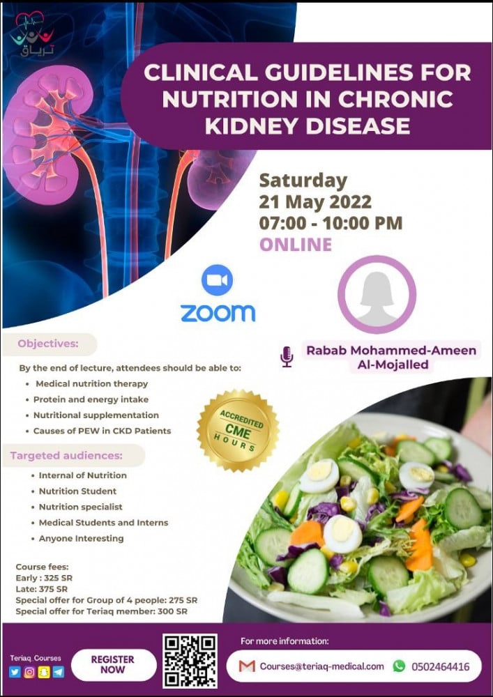 دورة CLINICAL GUIDELINES FORNUTRITION IN CHRONICKIDNEY DISEASE - online 😍♥️