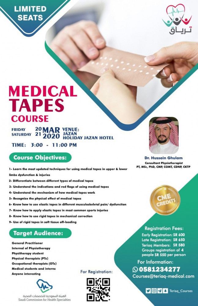- Learn the most updated techniques for using medical tapes in upper&lower limbs dysfunction &injuries